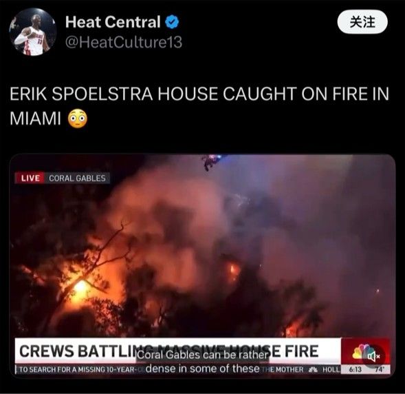 6686体育app11月6日讯 今日,据美媒Heat Central报道,热火主帅斯波尔斯特拉家中突发严重火灾,NBC在报道中可以确定这就是这位名帅的家。