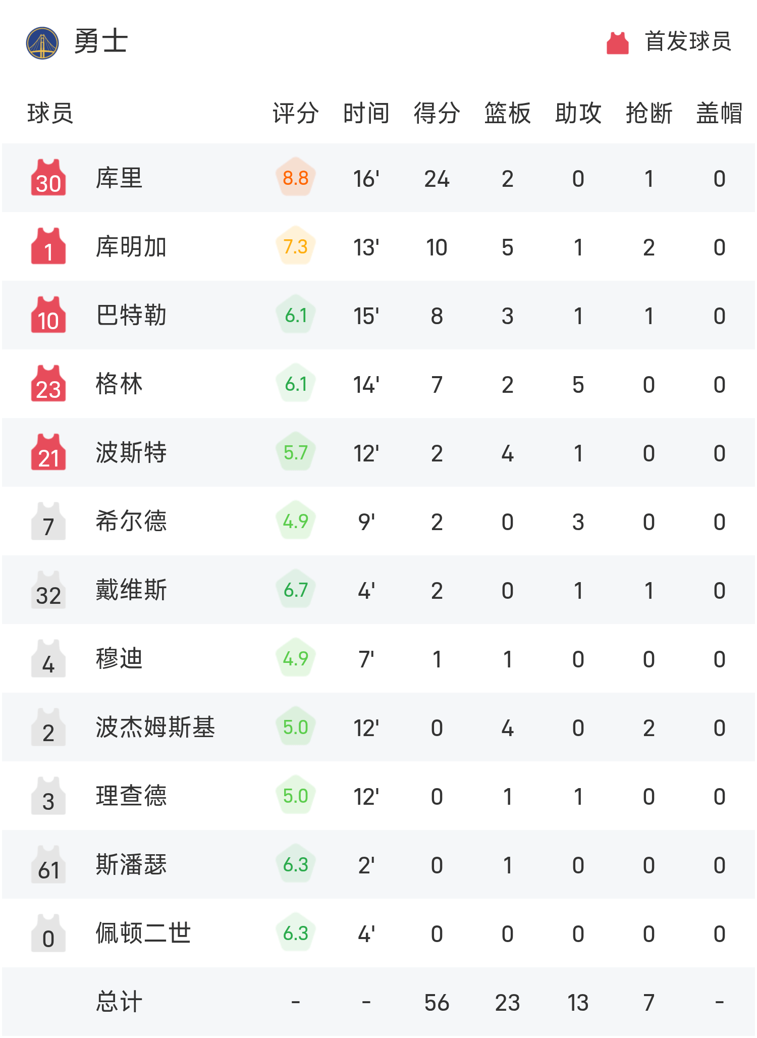NBA半场:杨瀚森1投0中得到1抢篮板1差错,库里5记三分球狂轰24分,开拓者69-56勇士
