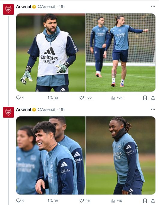 有眼尖的球迷发现,这些练习照中缺少了关键人物萨卡的身影。主帅阿尔特塔赛前透露加布里埃尔有伤在身,因此练习照中也没有加布里埃尔,但萨卡的情况无人提及,他的缺席引发了球迷们的担忧。