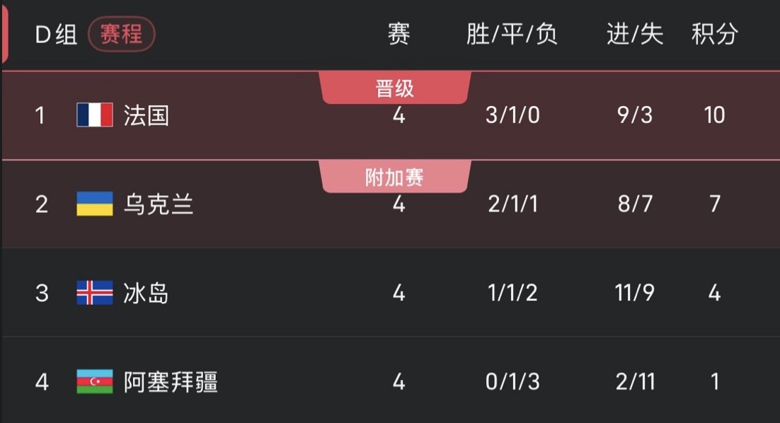 法国只需击败乌克兰,即可确保晋级世杯赛。