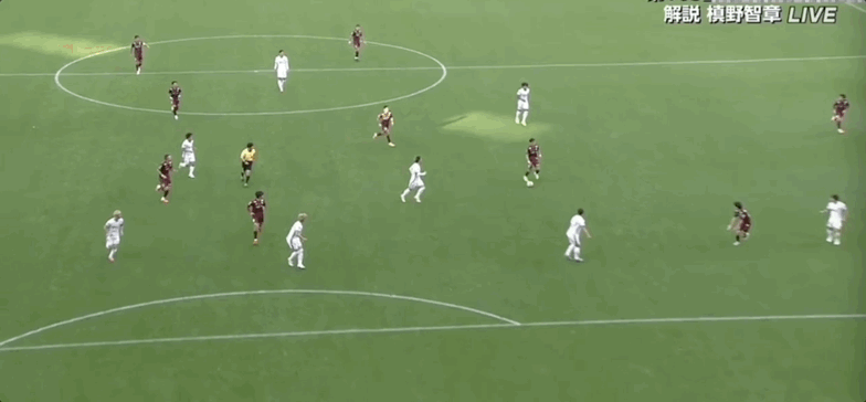 40’杰梅恩良三秒区前打门,神户守门员将球没收