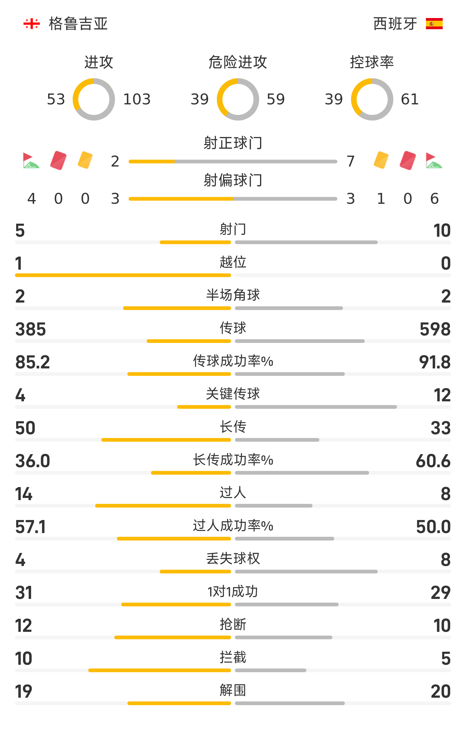 西班牙首发阵容:23-西蒙、14-拉波尔特、22-库库雷利亚、12-波罗(46’5-略伦特)、15-库巴西、6-梅里诺(62’19-费尔明)、8-鲁伊斯(62’2-巴里奥斯)、18-苏比门迪、21-奥亚萨瓦尔(71’9-伊格莱西亚斯)、7-托雷斯(80’11-皮诺)、16-巴埃纳