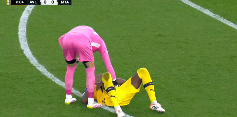 39’特拉维夫马卡比前场反击,大马丁神级反应扑出对手近距离空门