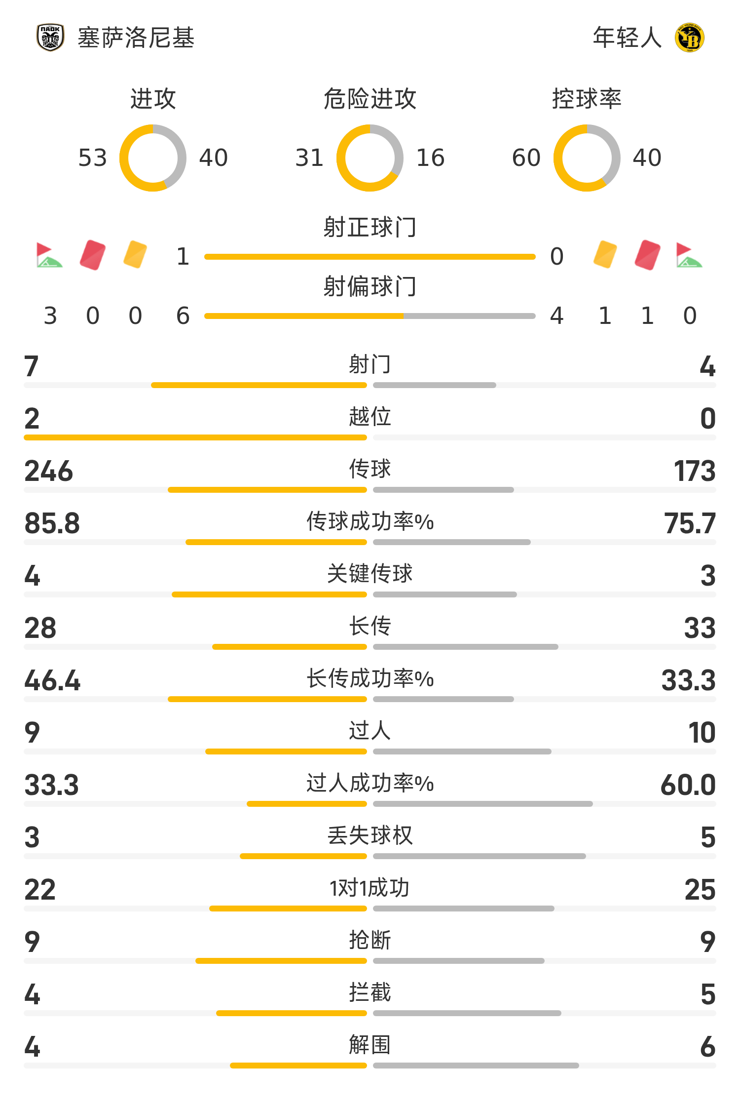 塞萨洛尼基首发阵容:99-特斯菲斯、21-巴巴、3-肯尼、4-沃格里亚科、5-米凯利迪斯、11-弗雷达、8-梅特、77-德斯波多夫、22-比安科、65-康斯坦泰利亚斯、7-贾库马基斯