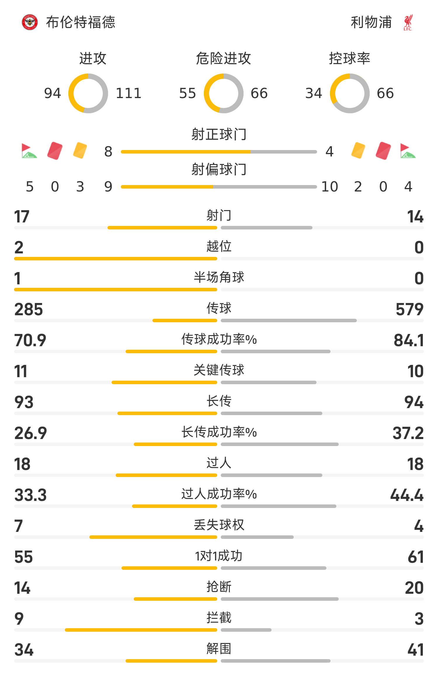 英超战报:蒂亚戈点射,利物浦2-3布伦特福德,联赛事4连败