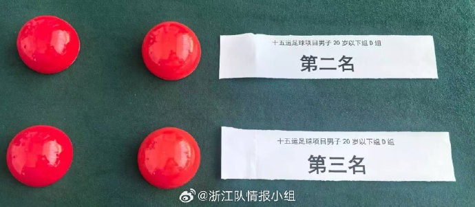 浙江U20因在分组赛终结后与同组的新疆U20的积分、净胜球、进球数、红警告牌数均相同,所以只能通过抽签决定名次。