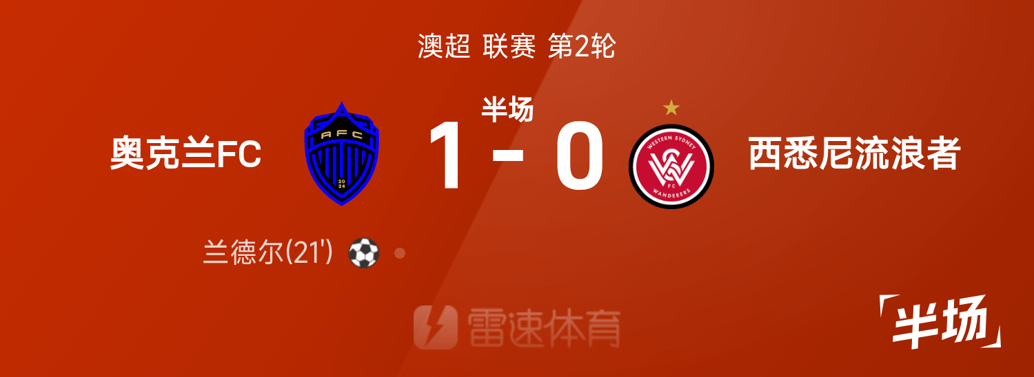 澳超半场:兰德尔外围射门建功,奥克兰暂1-0西悉尼流浪者