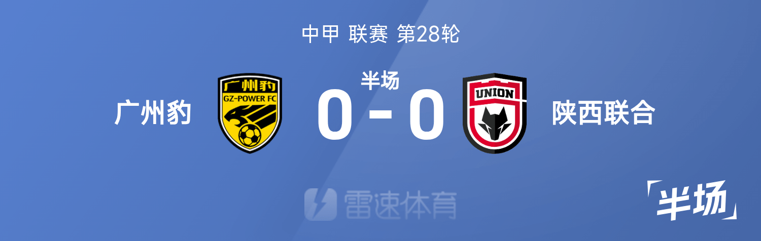 6686体育app10月26日讯 25赛季中甲联赛事第28轮,广州豹迎战陕西联合。半场战罢,双方赛果分暂为广州豹0-0陕西联合。