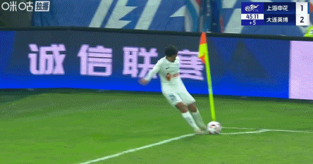 83’申花右路传禁区,徐皓阳后点侧身抽射打飞
