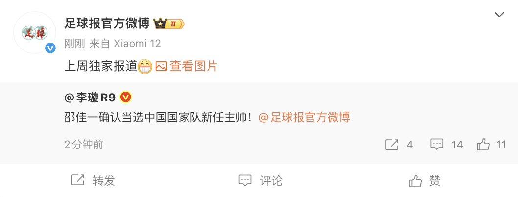 6686体育app11月5日讯 据《足球报》 报道,前中国男足国脚、助教&现青岛西海岸主帅邵佳一确认当选中国男足主帅。